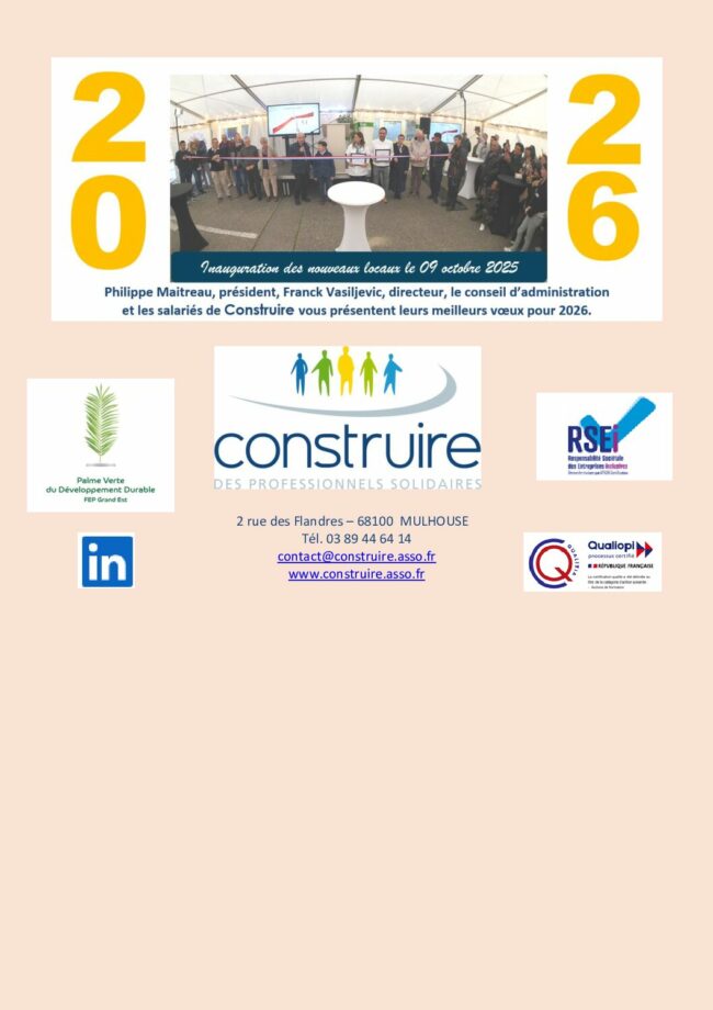 Le Président de Construire Philippe Maitreau, le Conseil d’Administration et le directeur Franck Vasiljevic ont élaboré pour l’ensemble des salariés en insertion, un projet ambitieux alliant formation en technique de nettoyage, formation en français langue étrangère et professionnelle, accueil professionnel, administratif et social personnalisé le tout avec la complicité active des salariés permanents de l’entreprise.…
